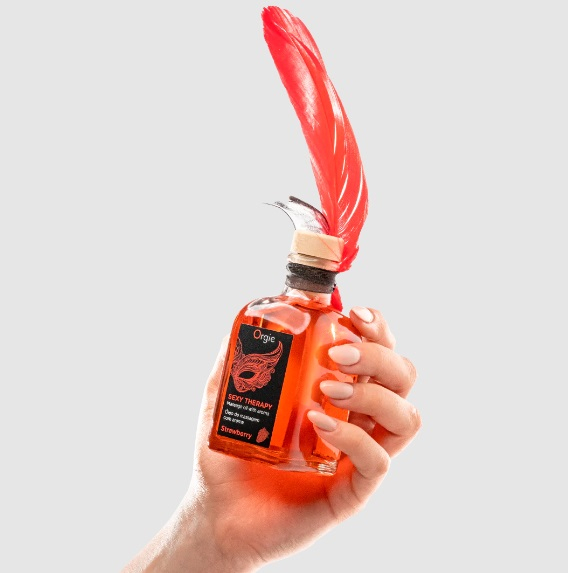 Масажний набір: їстівне масло для масажу + перо зі смаком полуниці Orgie Авокадо