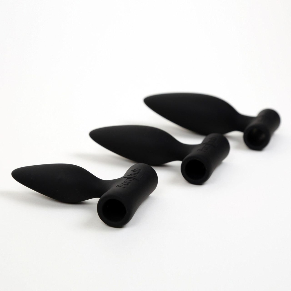 Пропонуємо купити набір анальних пробок Pornhub Anal Training Kit-відразу три пробки ідеальної форми і вібропуля на акумуляторі, яка підійде для кожної пробки. Три розміри (діаметр 2,7 см, 3,2 см і 3,8 см і вводиться довжина від 7,5 до 10,5 см) дозволять акуратно звикнути до анальних ігор і насолоджуватися ними по повній програмі! Гладка поверхня, зручна форма, безпечний обмежувач плюс 10 режимів вібрації забезпечать приємні відчуття і комфорт.