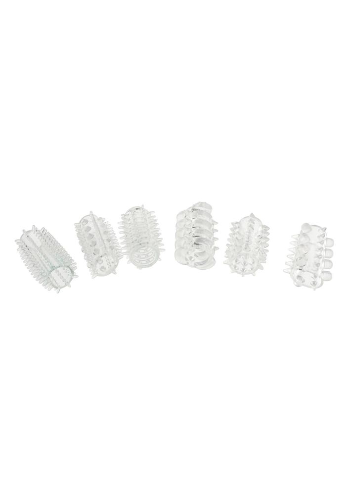 Double Dong з колекції Get Real від бренду TOYJOY – це Power Penis Sleeve – це набір з 6 еластичних насадок, які легко одягаються на член та призначених для задоволення вашої партнерки. Вони трохи додадуть в об'ємі та ширині вашого пеніса, а за рахунок різних виступів та рельєфів насадки відбувається стимуляція стінок вагіни.