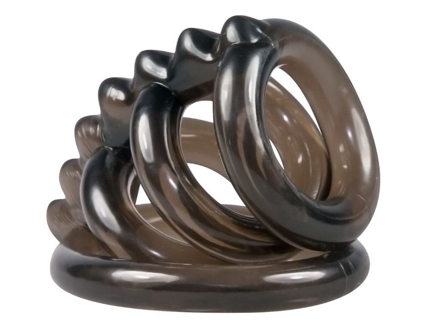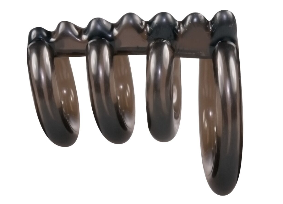 3 кільця для пеніса в поєднанні з кільцем для яєчок Ріфлена сполучна планка Розтягується - ідеально підходить Підтримує ерекцію Додаткова стимуляція під час сексу М'який шовковистий TPE Посилює ерекцію та стимуляцію! Кільце для члена від Bad Kitty поєднує в собі кільце для яєчок та 3 кільця для члена з ребристою сполучною перемичкою. Тріо кілець для члена, що щільно облягає і підтримує ерекцію, просто надягається, а кільце для яєчок забезпечує щільне прилягання і збуджуючий натяг. М'яка ребристість сполучної планки забезпечує додаткову збуджуючу стимуляцію під час сексу. Приємний для шкіри м'який, шовковистий матеріал, що тягнеться (TPE) чудово адаптується до пеніса і яєчок, а також до рухів. Загальна довжина 6,5 див. Товщина кілець 8 мм кожне. Кільця Ø 3 x 2,3 см та 1 x 4,3 см. TPE.