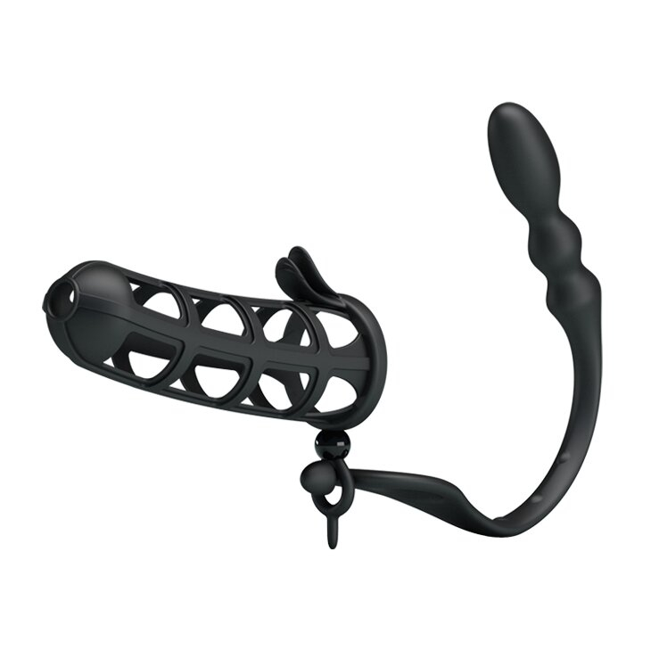Приємна на дотик, легко розтягується до потрібного розміру (довжина насадки - 11,5 см, Діаметр отвору - 4 см). Доповнена анальним стимулятором-Робоча довжина-8 см