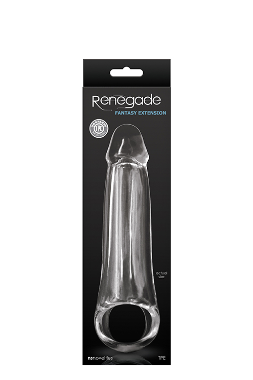Прозоре подовження статевого члена Renegade забезпечує підвищене візуальне збудження, додатковий обхват та довжину для посилення відчуттів та задоволення. Виготовлений із безпечного для тіла TPE без запаху та сумісний з усіма мастильними матеріалами.