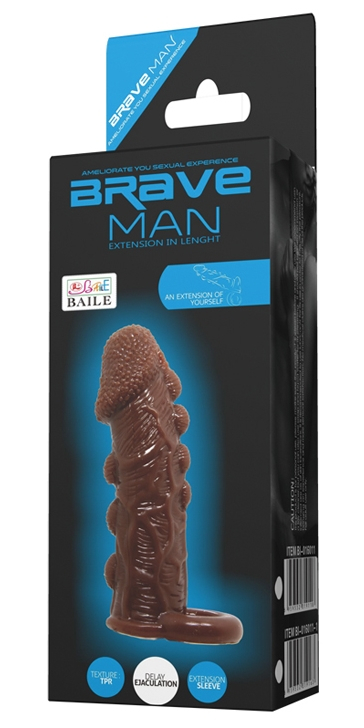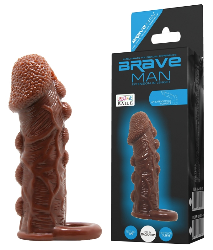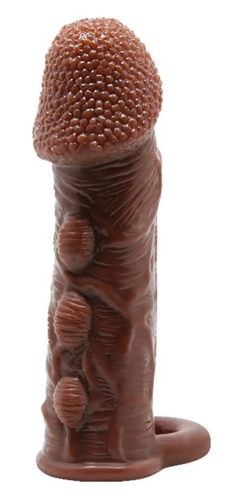 Насадка реалістична на член з кільцем та великими пухирцями коричневого кольору LYBAILE Brave Man BI-016012 Авокадо