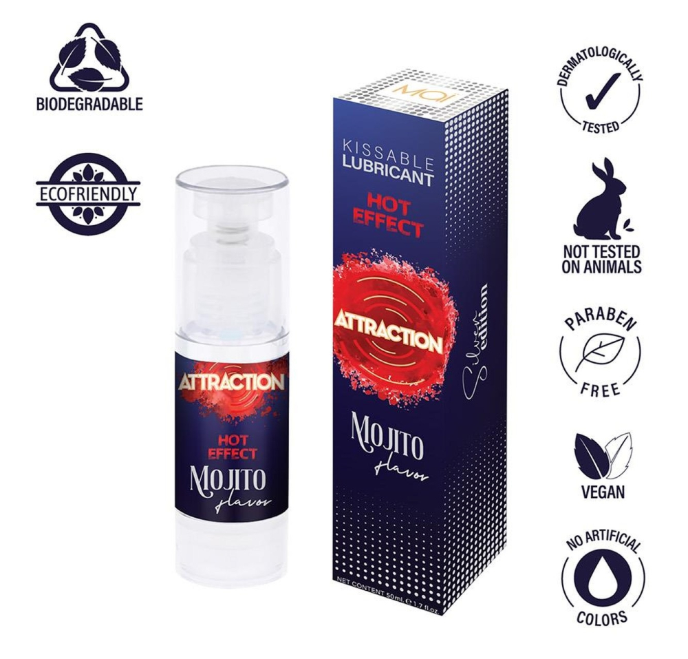 Ароматизований лубрикант Attraction Flavored Kissable Lubrikant "Мохіто". Зігріваючий лубрикант може збільшити збудження за рахунок посилення кровотоку. Без синтетичних ароматів та барвників. На смак, як справжній! Attraction Flavored Kissable Lubrikant - відмінний спосіб познайомити з оральним сексом партнера, який може бути трохи вагається. Нанесіть кілька крапель мастила на свої ерогенні зони і запропонуйте партнеру досліджувати їх одну за одною. Водорозчинні / біорозкладні: ароматизовані мастила Attraction Flavored Kissable Lubrikant створені на водній основі. Ці формули м'яко впливають на чутливу шкіру та забезпечують тривалу шовковистість. Ці мастила безпечні для латексу, легко змиваються теплою водою та безпечні для використання з усіма типами іграшок. Без цукру та глютена: ароматизовані мастила Attraction Flavored Kissable Lubrikant не містять цукру, глютена або барвників. Ці смачні ласощі на смак як справжні, без штучного смаку. MAI Attraction Flavored Kissable Lubrikant не містить парабенів.
