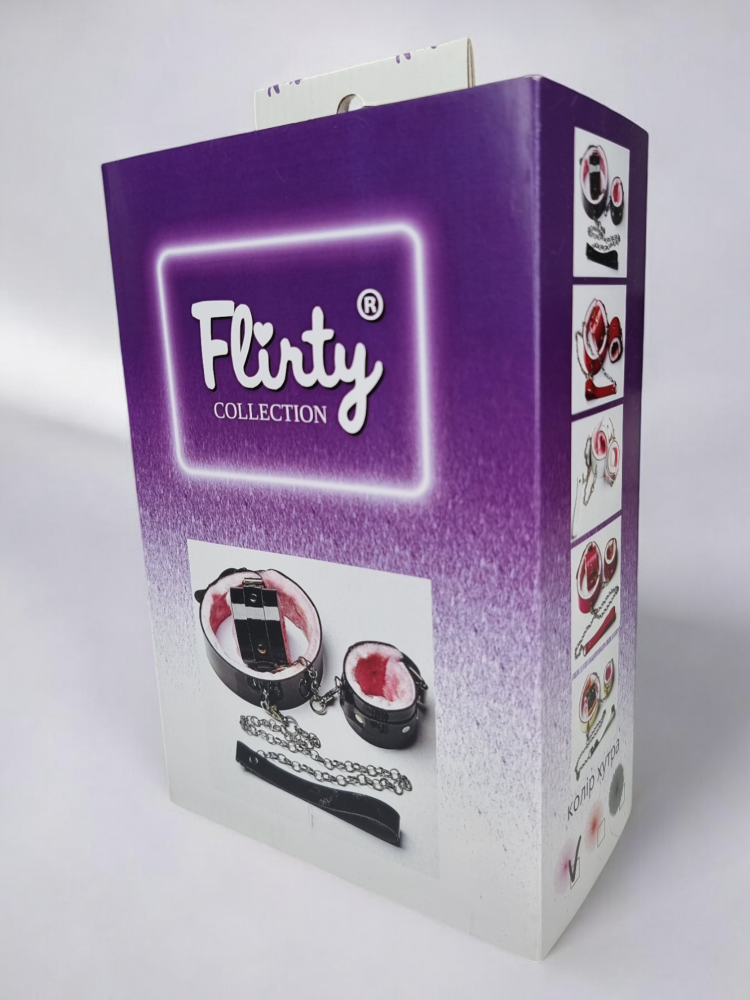 Характеристики Подарунковий набір для фіксації наручники та нашийник з повідцем з еко лаку чорного кольору Flirty Collection Авокадо