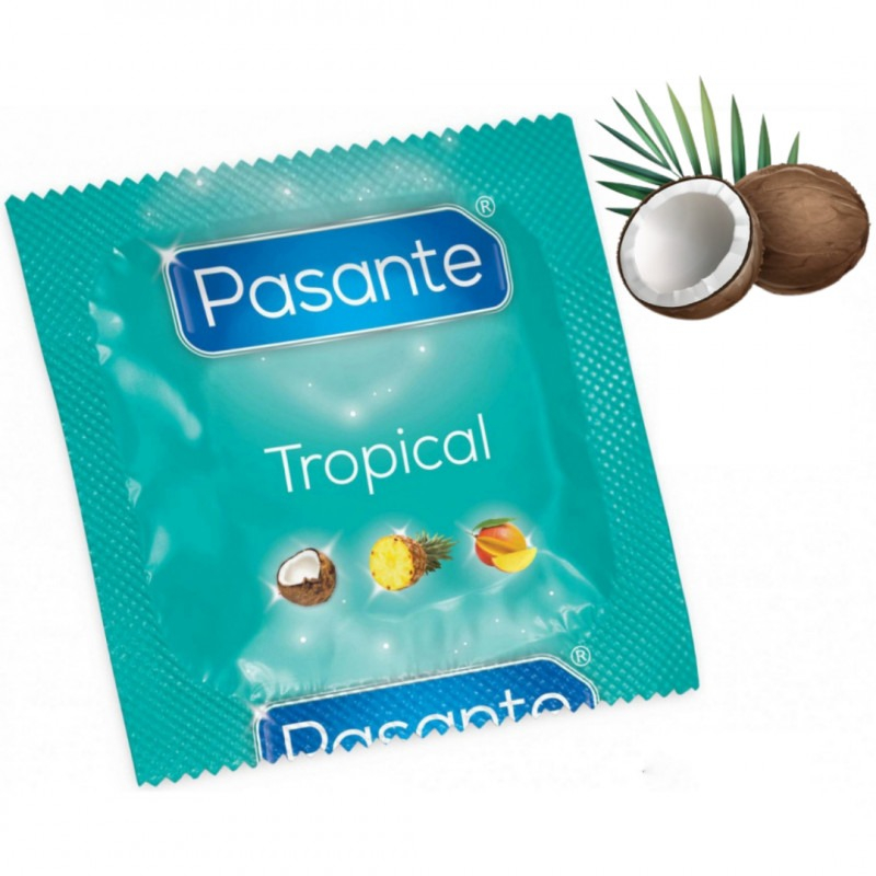 Ніжний аромат кокосу надає інтимним моментам унікальної нотки екзотики та пристрасті. Виготовлені із високоякісного натурального латексу, забезпечуючи надійний захист. З діаметром 53 мм вони підходять для більшості чоловіків, забезпечуючи комфорт та надійність. Прозора та гладка текстура забезпечує максимальне почуття під час близькості. Презервативи Pasante Tropical приносять незабутні моменти у вашому інтимному житті.