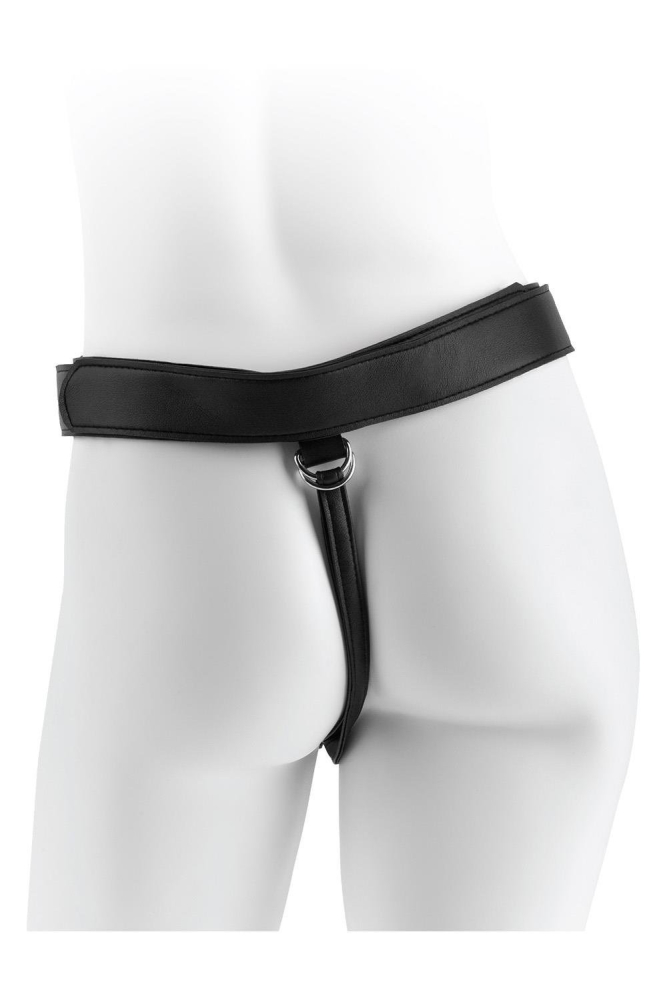 Класичні чорні трусики зі штучної шкіри ідеально сідають на будь-яку фігуру, а також надійно утримують фалоімітатор. Довгі ремені кріпляться за допомогою міцних металевих пряжок-петлів.