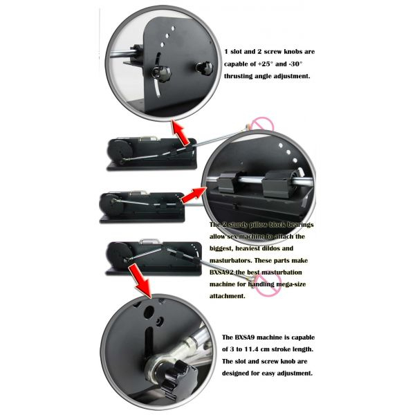 Секс-машина bxsa9 менша і така ж потужна, як BXSA3. Вона має довжину ходу від 3 до 11,4 см.1 паз і 2 гвинтові ручки дозволяють регулювати кут нахилу + 25 ° і -30°. 4 гумові ніжки захищають ваші меблі. конструкція дозволяє легко переносити машину. Цей стиль має два кольори: чорний і дзеркально-сріблястий. Розміри в зборі: 55 (довжина) * 21,5 (ширина) * 18,5 (Висота) см. Вага в зборі: 7,5 кг. Глибина ходу: 3-11,4 см. Характеристики: 24 В постійного струму, 5-6 а, нескінченна швидкість, 4-5 ходів в секунду, крутний момент, 30 кг * см / 3 н · м, Вхідна напруга, 100-240 В, 50-60 Гц, Розмір упаковки: 23 * 29 * 53 см, брутто: 9 кг. стрижень, пружинний з'єднувач, подвійний полюс, Затискач, загальний перемикач і т. д.