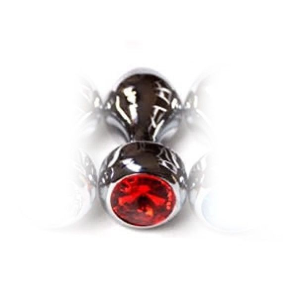 Срібляста анальна пробка з червоним дорогоцінним каменем Авокадо