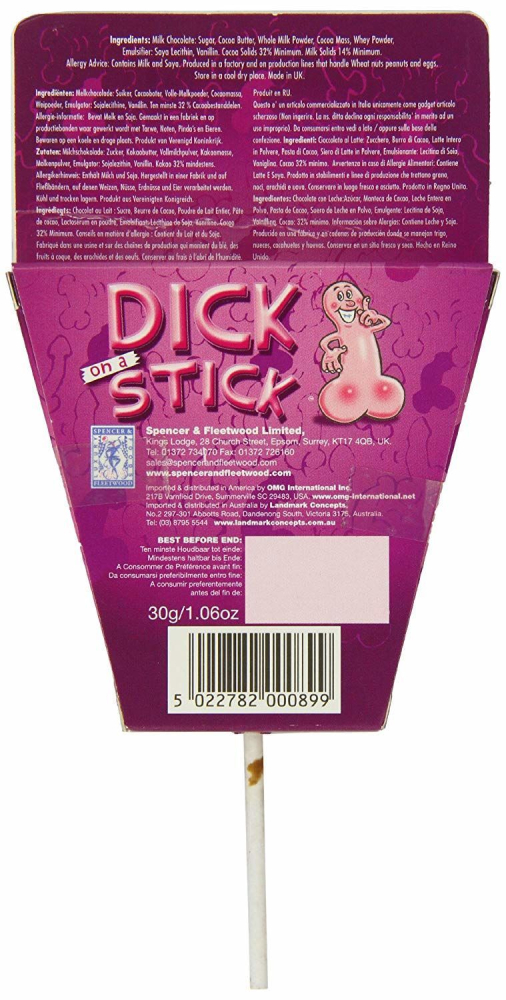 Пропонуємо купити шоколадний член на паличці Dick on A Stick. Веселий пеніс з молочного шоколаду на паличці упакований в забавну рожеву упаковку.