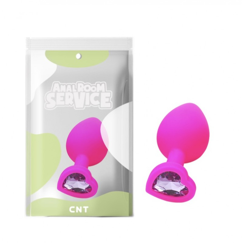 Анальна пробка силіконова рожевого кольору з фіолетовим камінчиком у формі серця Cnt Love Diamond розмір Medium Авокадо