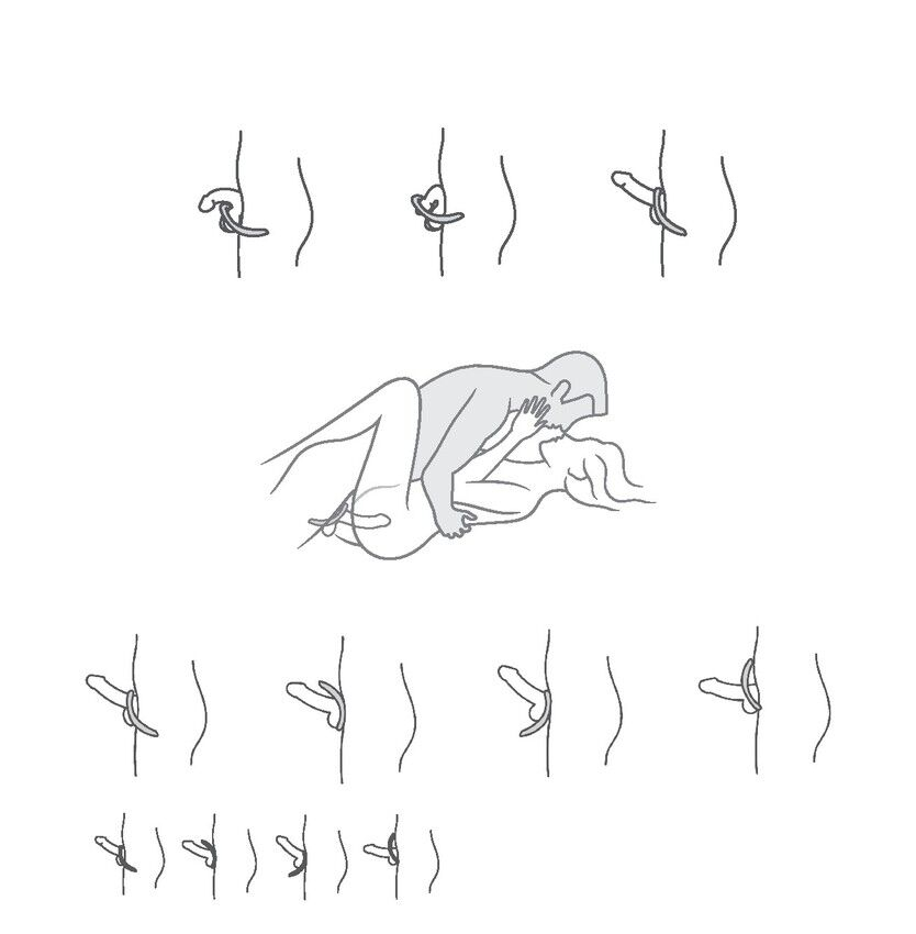 - Безліч варіантів використання: змінюючи варіант розміщення кільця на члені та мошонці, можна стимулювати промежину чоловіка та клітор жінки.