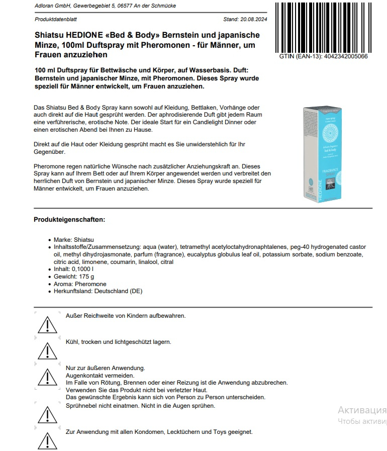 Афродизіаки та активні речовини у складі спрею подарують дуже приємний, збуджуючий та стійкий аромат.