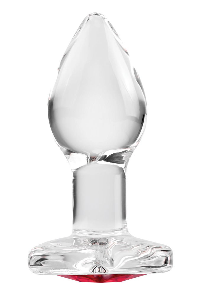 Анальний скляний корок прозорого кольору з червоним камінчиком у формі серця Adam & Eve Red heart gem glass plug розмір Small Авокадо
