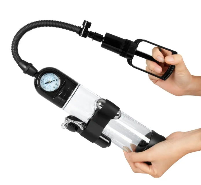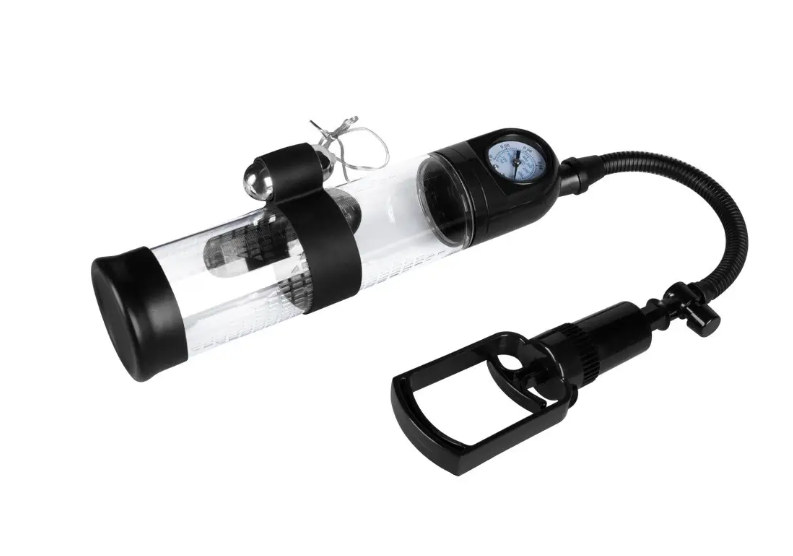 Вакуумна помпа розроблена для чоловіків, які шукають нові можливості. Регулярне використання збільшує розмір статевого члена та посилює ерекцію. Висока якість матеріалів, з яких виготовлений насос, зробить використання виробу приємним, безпечним та довговічним. Пристрій має потужний насос. Регулярні тренування дають стабільний та помітний результат. Повітря із циліндра відкачується зручним механізмом. Манометр показує тиск у колбі, а розмірна шкала на поверхні дозволяє побачити різницю до та після масажу. Помпа додатково оснащена яйцем, що вібрує, з регульованою швидкістю, що значно збільшує задоволення від тренування. Дуже зручна помпа для збільшення, завдяки якій ваш пеніс може збільшуватись як у довжину, так і в діаметрі протягом кількох тижнів. Його робота проста і дотримується законів фізики - після вставки елемента всередину насос створює вакуум. Це, своєю чергою, дозволяє кровоносним судинам швидше і більше заповнювати кровоносні судини. Завдяки цьому ви зробите свій пеніс набагато чутливішим до будь-якого дотику, ви зможете відчути набагато більше задоволення і, таким чином, призведе до оргазму, якого у вас ніколи не було. Довжина – 32 см. Діаметр – 6.9 см.