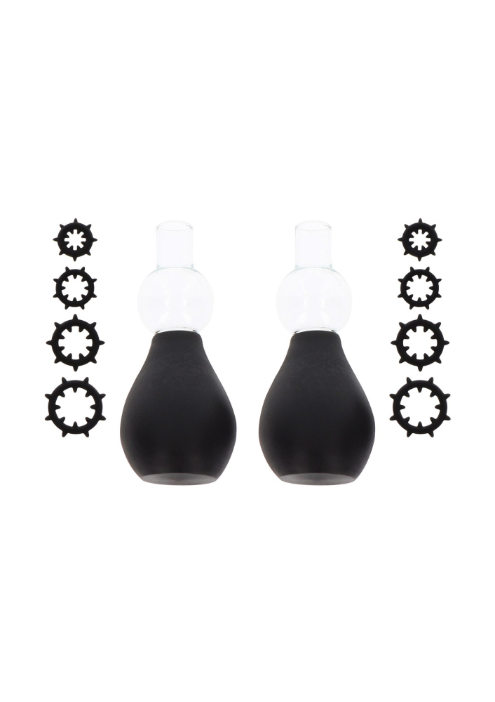 Насоси для сосків Nipple Enlargers with 8 Rings, чорні, 6.5 см