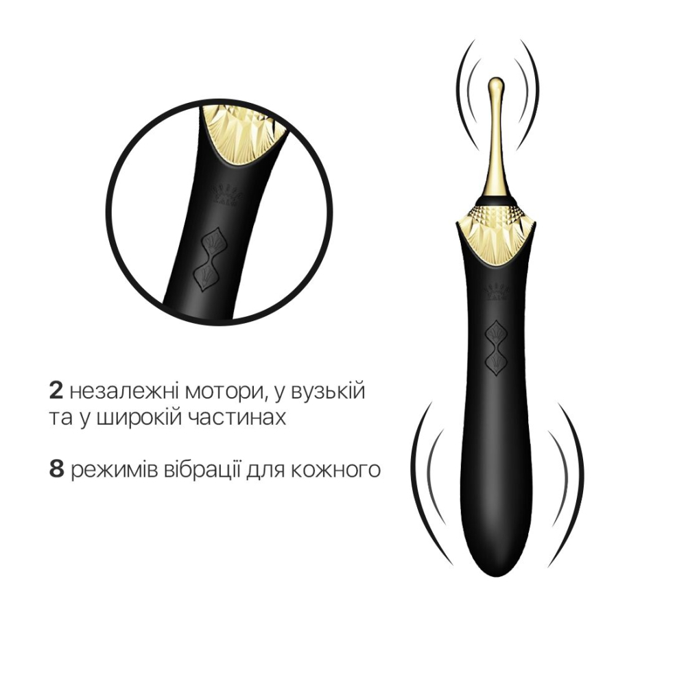 Вібратор універсальний двосторонній із 3 насадками чорного кольору Zalo Bess Авокадо