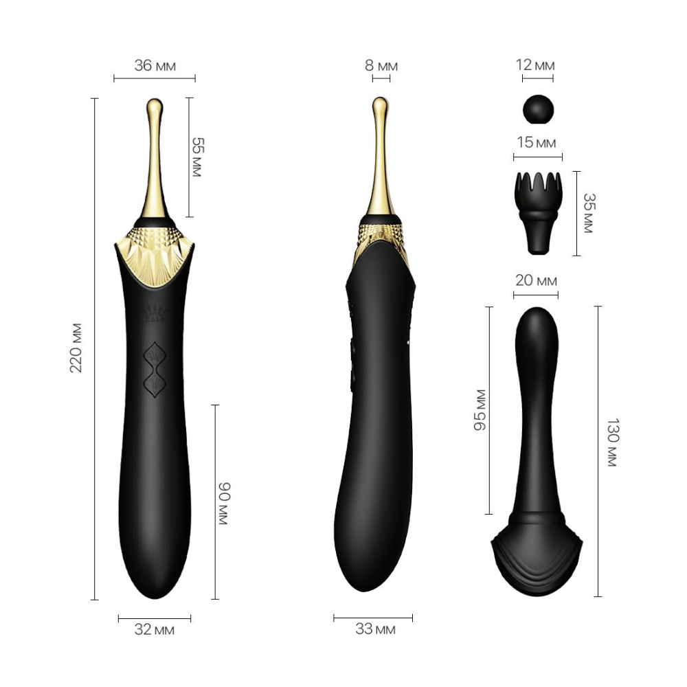 Характеристики Вібратор універсальний двосторонній із 3 насадками чорного кольору Zalo Bess Авокадо