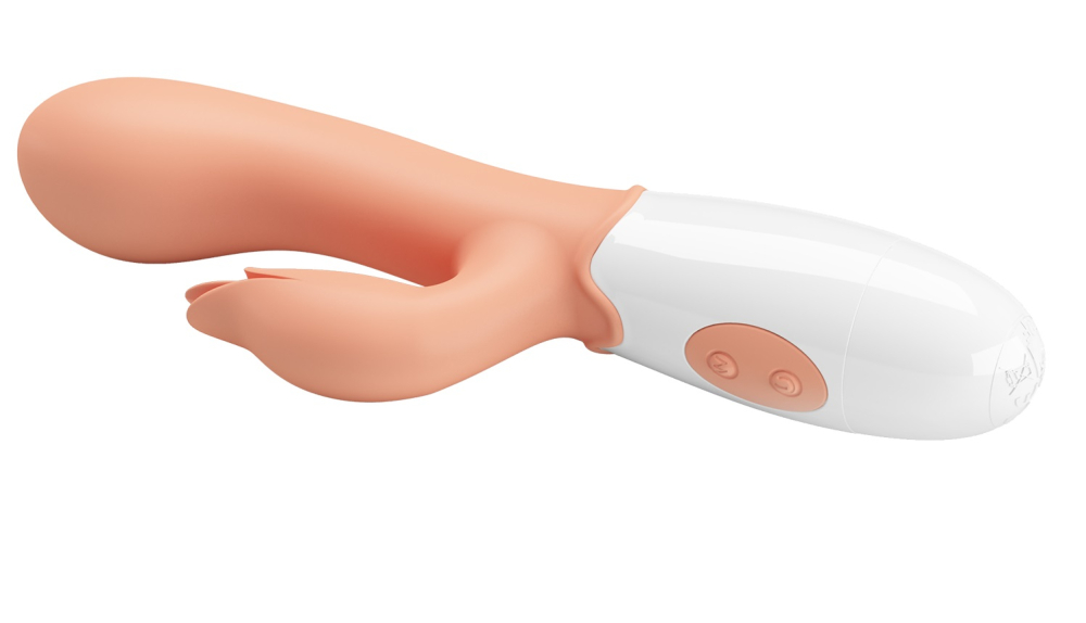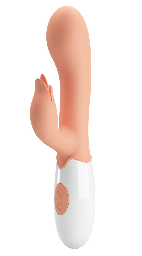 Вібратор вагінальний для точки G та з відростком для клітора у формі квіточки тілесного кольору Lybaile Pretty Love Bloody Mary Авокадо