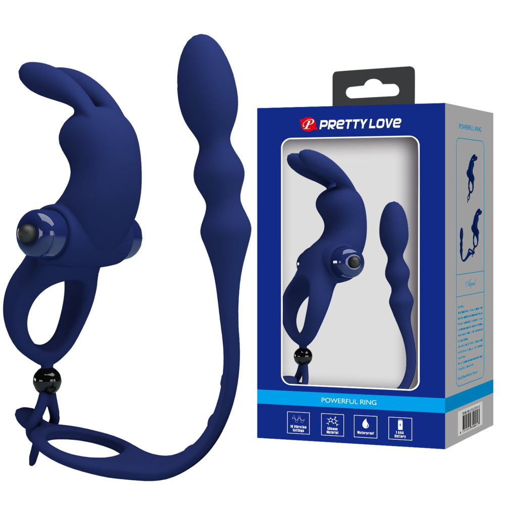 Вібромасажер для простати з ерекційним віброкільцем на член синього кольору Lybaile Pretty Love Powerful ring Авокадо