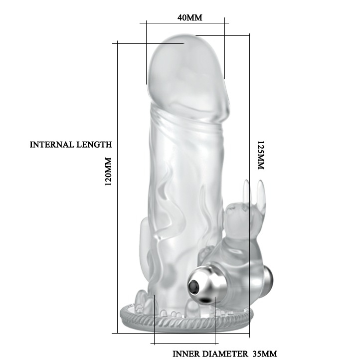 Насадка на член Baile Brave Man з вібрацією, прозора, 18х4 см
