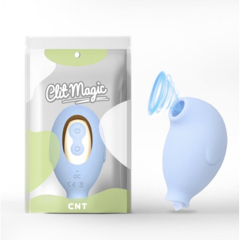 Подвійний кліторальний стимулятор із вакуумною стимуляцією всмоктуванням та лизанням язиком блакитного кольору Cnt Penguin Navy Авокадо