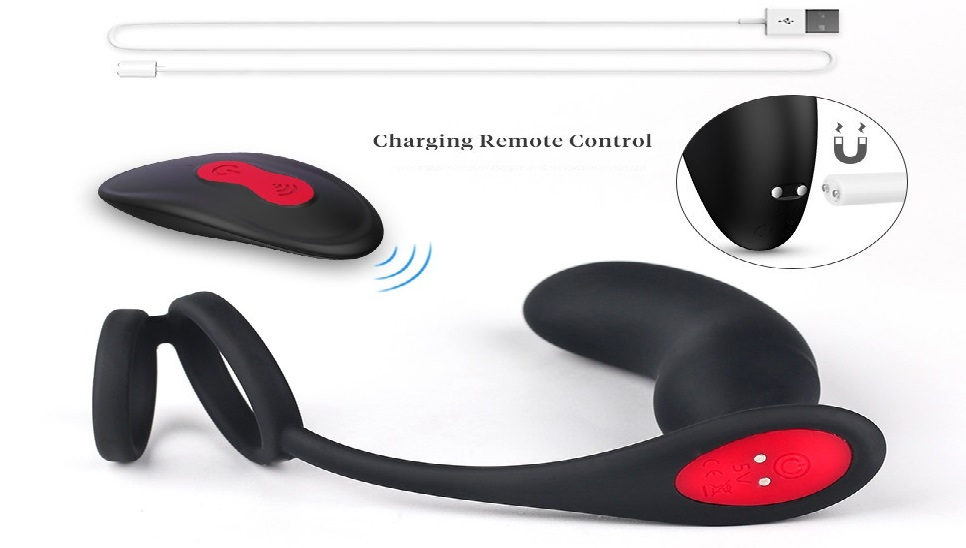 Бездротовий масажер для простати і анального масажу з дистанційним управлінням і кільцем для члена.
