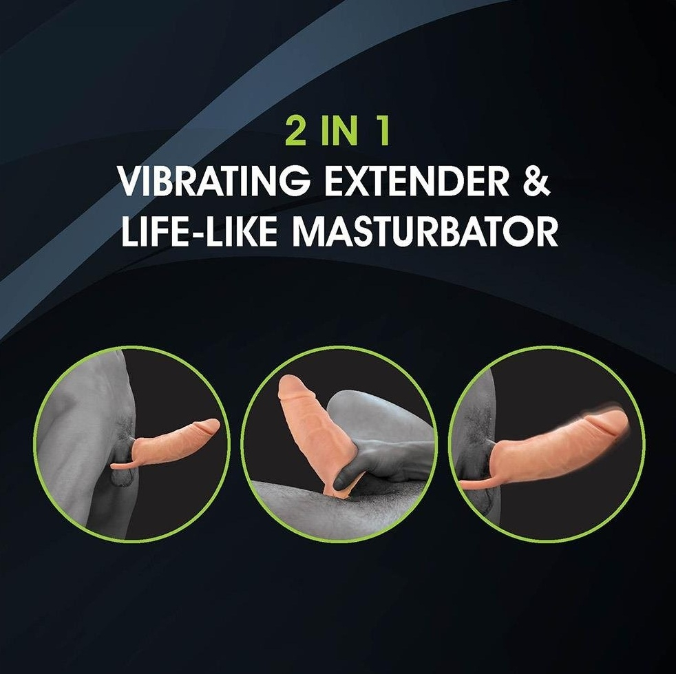 Новый 2-в-1 Extendor+ разработан как удлинитель пениса с гибким кольцом вокруг яичек, которое надежно фиксирует рукав на члене, чтобы увеличить удовольствие от секса. Он также работает как мастурбатор с реалистичным мягким и плотным узловатым туннелем. Он обеспечивает интенсивную и максимальную стимуляцию для сольной игры.