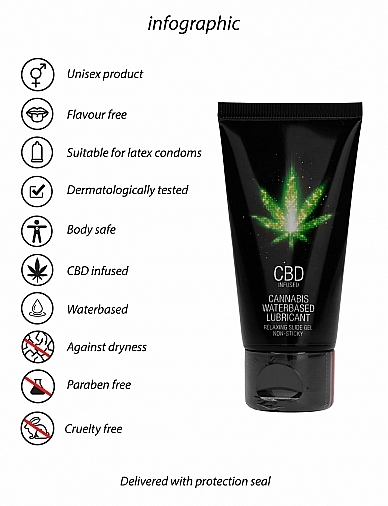 Смазка на водной основе CBD Cannabis - очень густая смазка. Добавление экстракта CBD обеспечивает лучшее впитывание кожей и дает лучшее скольжение