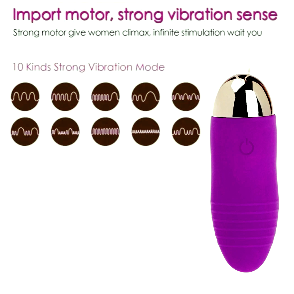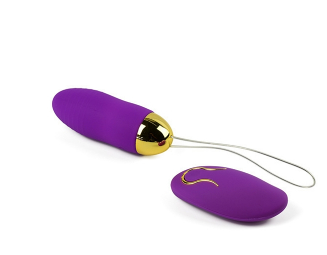 в фиолетовом цвете. Пульт из матового пластика. В яйце мощный аккумулятор, который работает на 10 разных режимах вибрации и управляется с дистанции 20м.