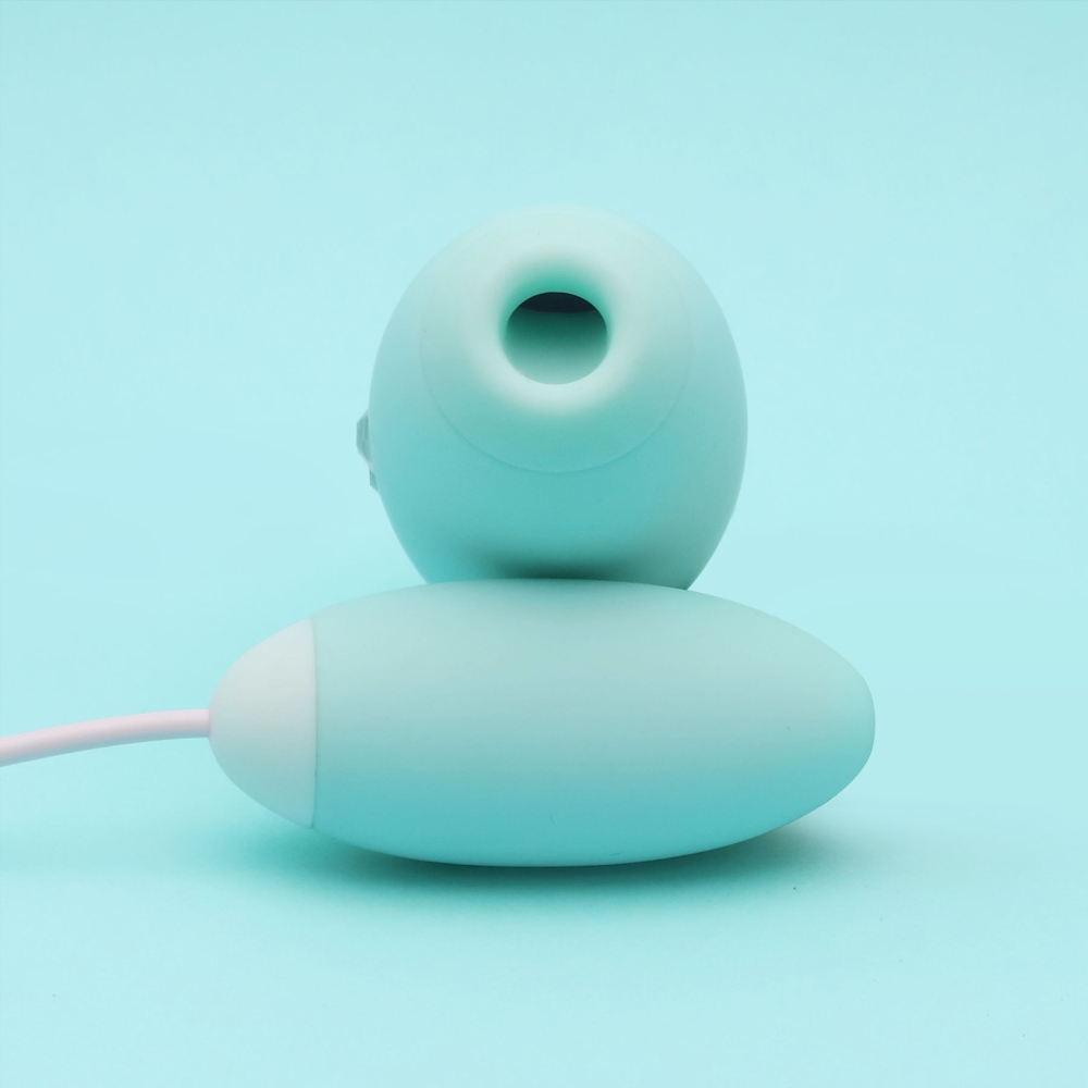 Вакуумный стимулятор для клитора-виброяйцо KissToy Miss VV Cyan Avokado