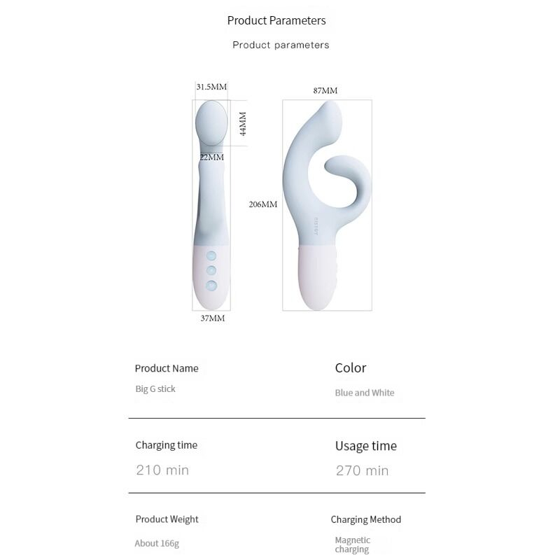 Характеристики Вапгинальный вибратор для точки G кролик с клиторальным отростком голубой KISTOY Big G Avokado