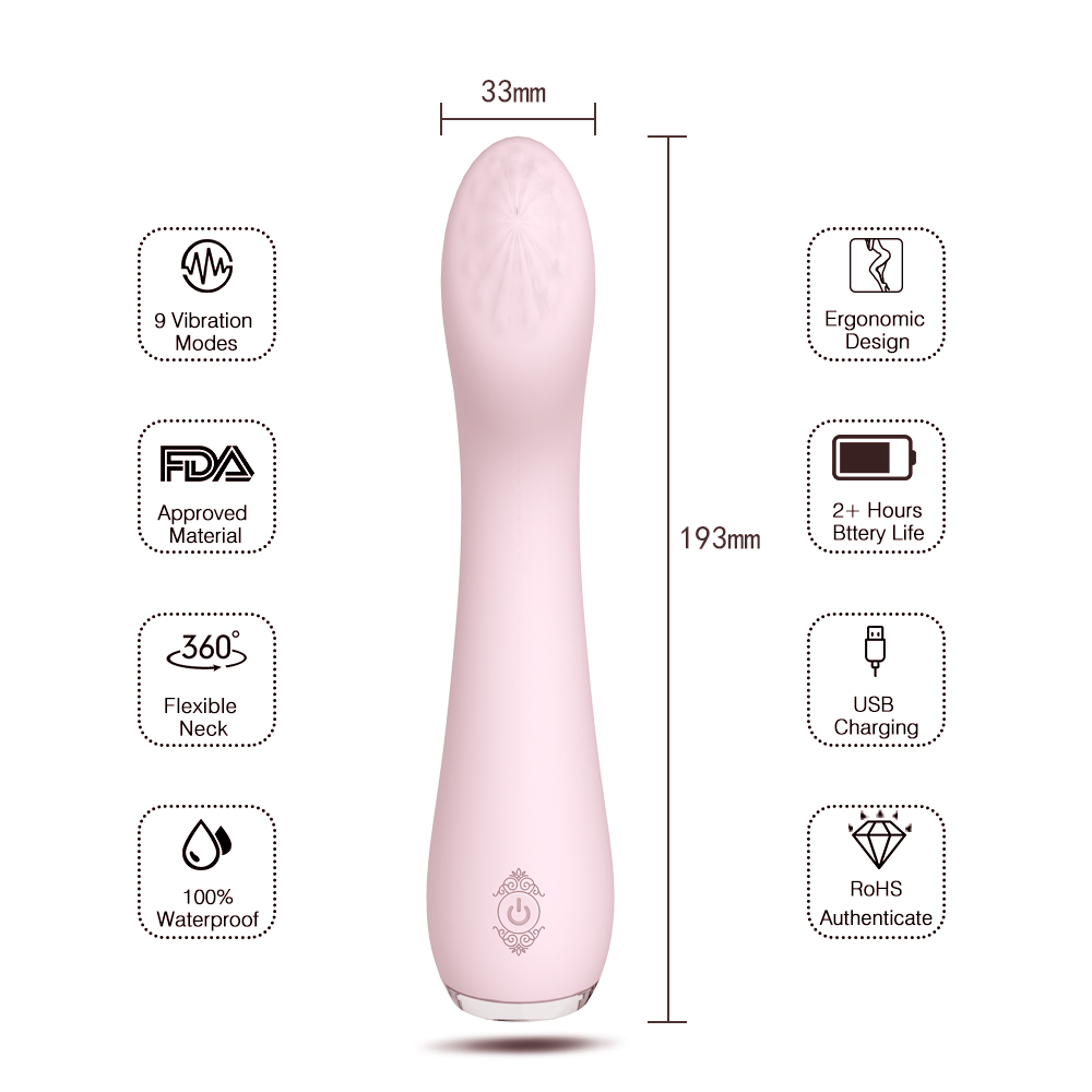 Характеристики Вибратор 19,3 см/3,3 см для точки G и клитора с подсветкой LISA 9 режимов вибрации Супер Тихий Avokado