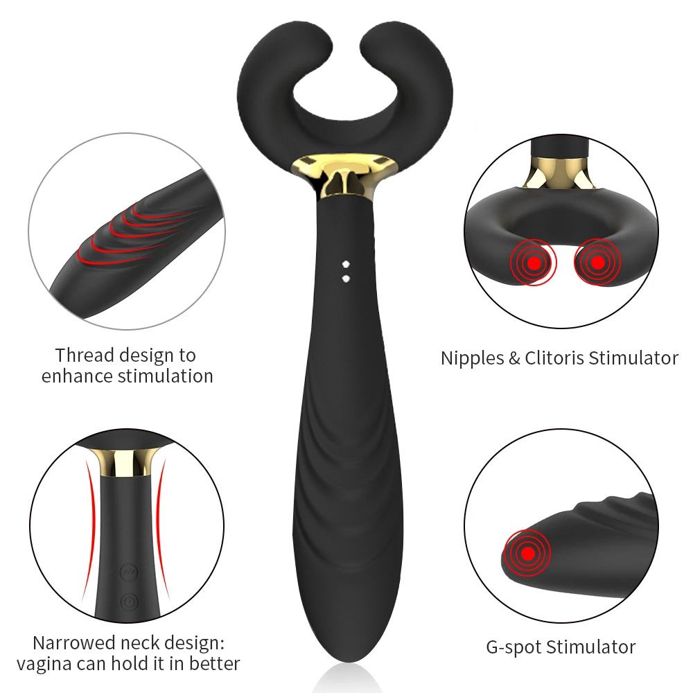 в черном цвете. Очень стильный и привлекательный дизайн ещё больше возбуждает эротические фантазии. Три мощных мотора расположены непосредственно в коловках вибратора. Рожки гибкие, подстраиваются под любой объём пениса, а с использованием лубриката невероятно приятно скользят и вибрируют на 10 разных режимах. Основной ствол гладкий с небольшим рельефом для дополнительной стимуляции, активно массажирует на 10 разных режимах.