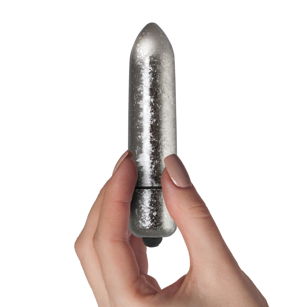 Хотите эротическую зимнюю сказку, полную удовольствий и сладких радостей Создать игривое настроение поможет вибратор Rocks Off RO-120mm Frosted Fleur - Snowflake, серебряное сверкание замерзших цветов которого подарит вам эстетический оргазм, а уж о настоящем оргазме, полноценном и глубоком, позаботятся 10 режимов вибрации. Благодаря мощному мотору и двум батарейкам вибрации будут ощущаться не только в точке соприкосновения с вибратором, но и распространятся приятными волнами по всему телу. Зауженный наконечник поможет точно воздействовать на клитор, соски, половые губы и любые другие эрогенные зоны.