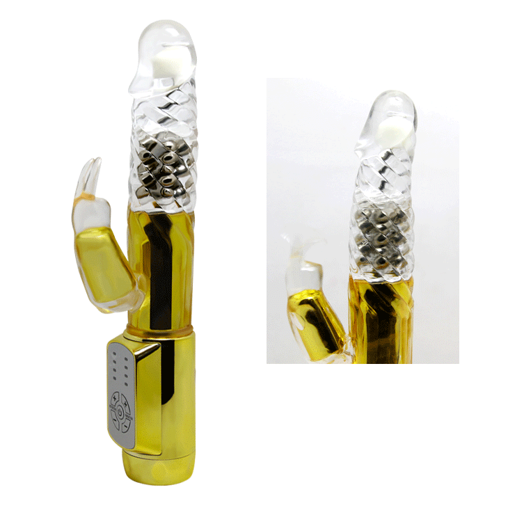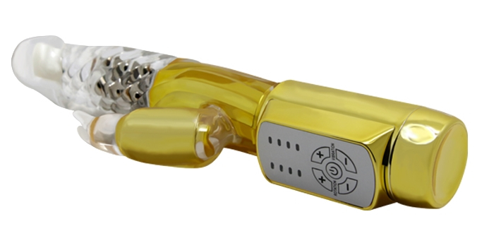 Вибратор с стимулятором клитора и вращающейся головкой.