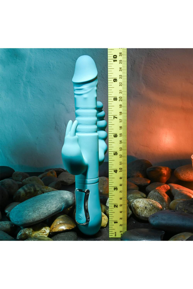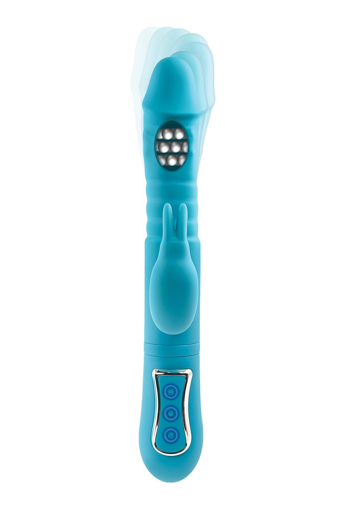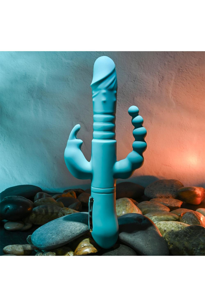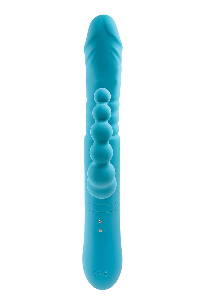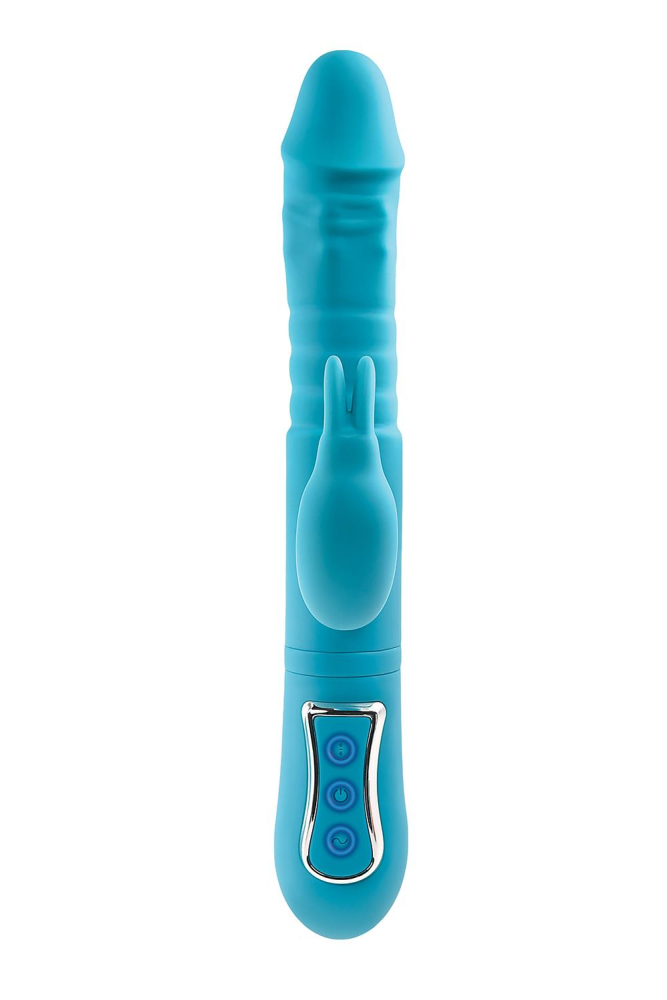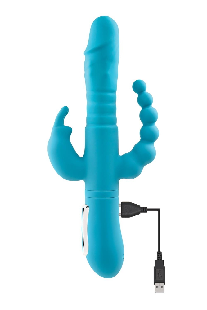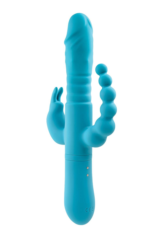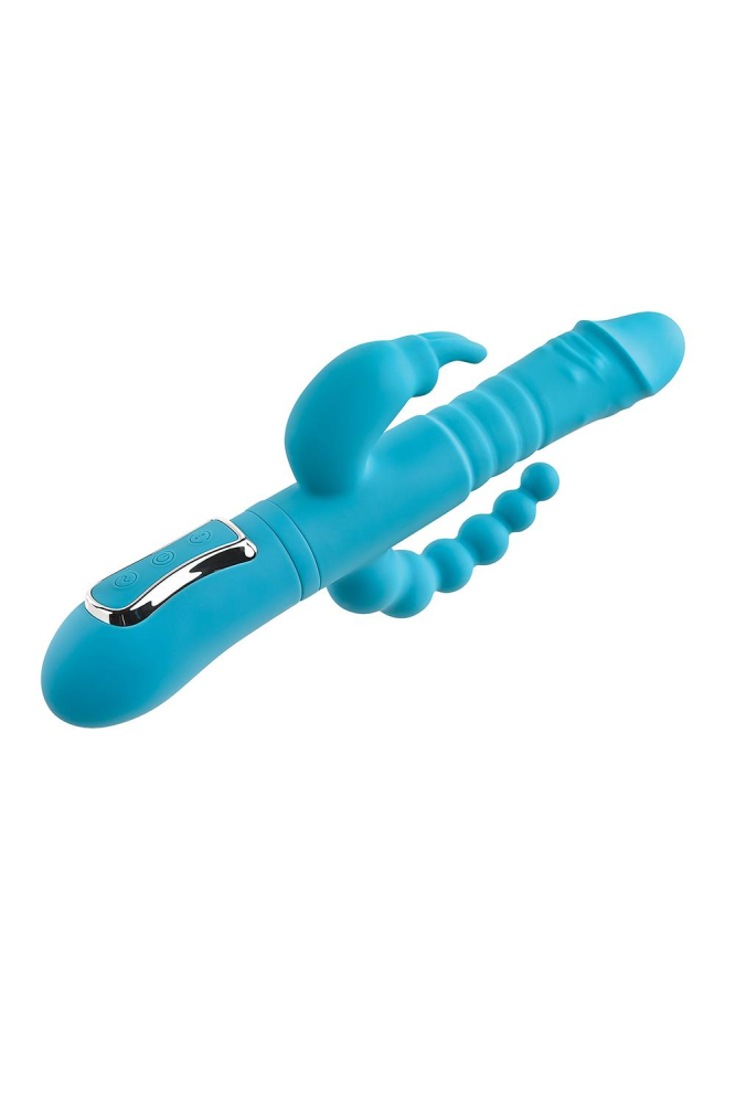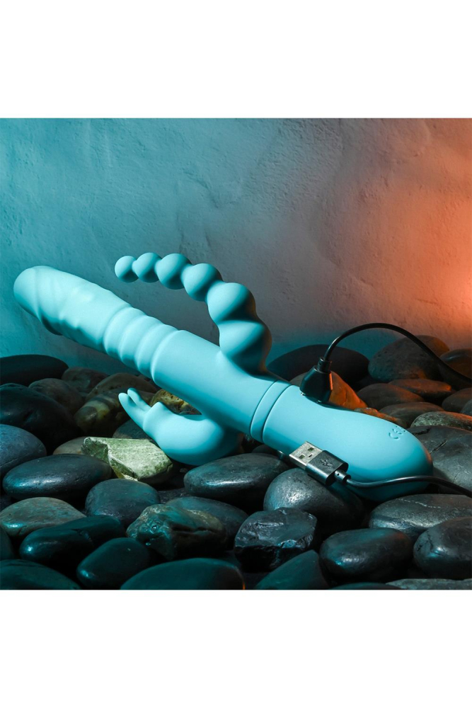 Вибратор тройной стимуляции Вагинальный Клиторальный стимулятор и Анальный голубого цвета Adam & Eve Eve's Thrusting Triple Joy Rabbit Avokado