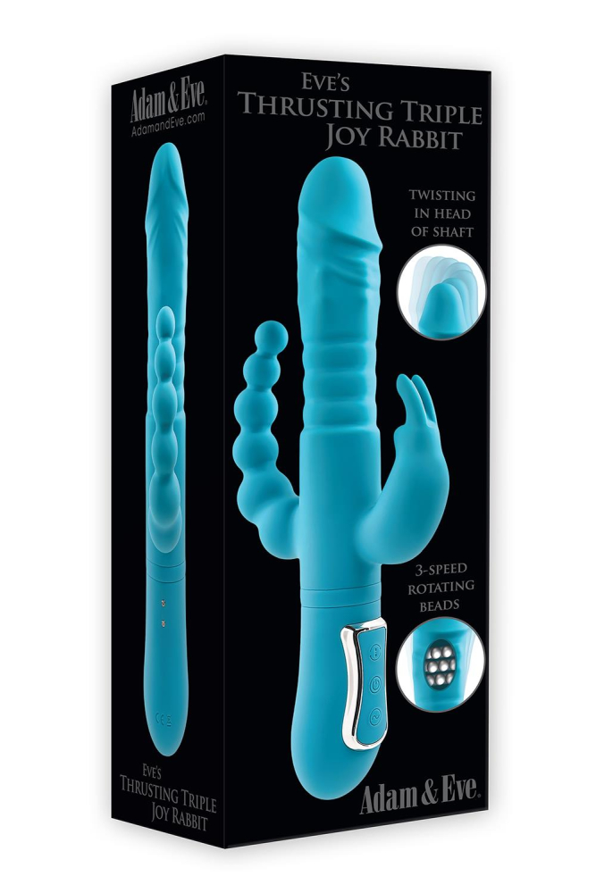 Характеристики Вибратор тройной стимуляции Вагинальный Клиторальный стимулятор и Анальный голубого цвета Adam & Eve Eve's Thrusting Triple Joy Rabbit Avokado