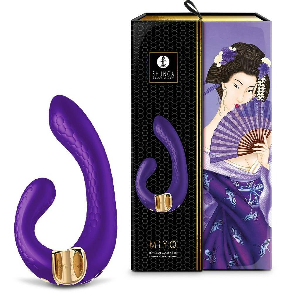 Вагинально-клиторальный вибратор Shunga Miyo нереалистичный, фиолетовый, 18,5 х 3,7 см