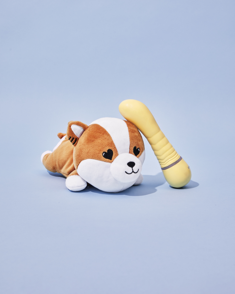 Вибратор для зоны G от Friday Bae уходит в комплекте с кейсом в виде мягкой игрушки. Плюшевая собачка шиба-ину будет заботиться о вашей конфиденциальности.
