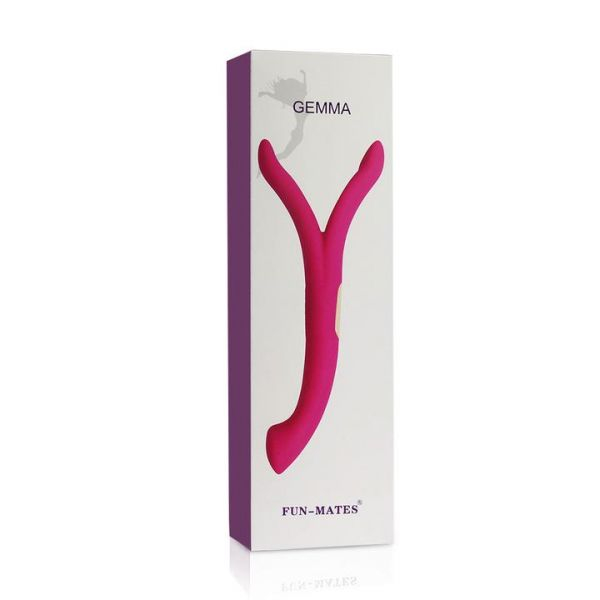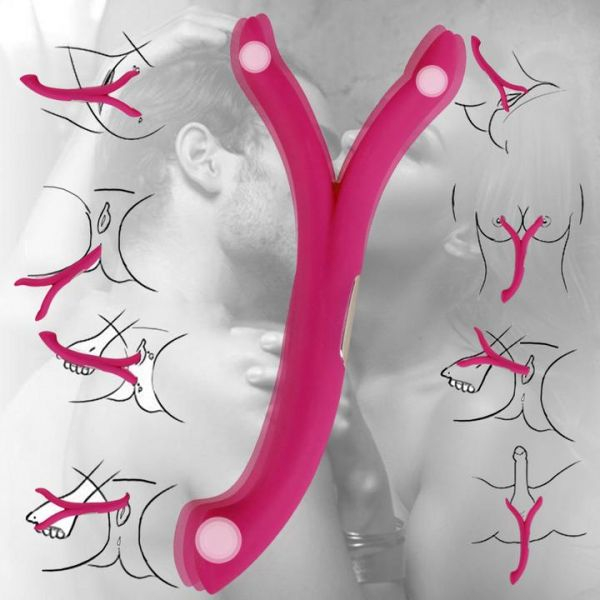 Gemma Y-type vibrator, can be used to stimulate G-point, nipples, also can clip and massage the breast. The vibrator has a multi speed functions so you can decide any powerful vibration you want 3 motors can vibrating at the same time, it can be used for 2 girls, and fly you to the moon, indeed!PRODUCT DETAILSMaterial: Silicone, ABSSize: 255*35*98mmFunction: 8+8+8 vibration modesFeature:body massager and vaginal stimulationWaterproof:IPX6Battery: Li-battery, USB ChargeCharging & Using time:2h/1hPACKAGING INCLUDE1x Vibrator1x USB cable1 x User manual1 x Storage pouch