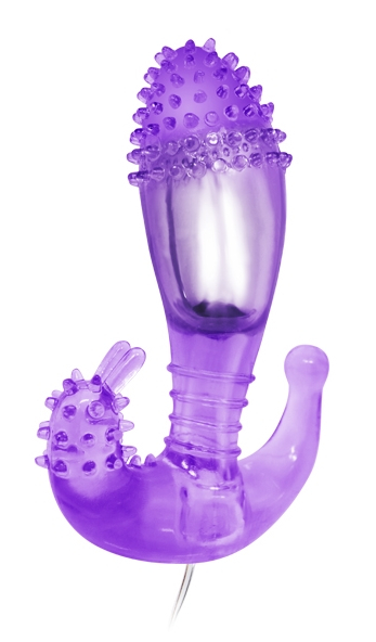 Особенность стимулятора - наличие сразу 2 отростков - для одновременной вагинальной, анальной и клиторальной стимуляции.