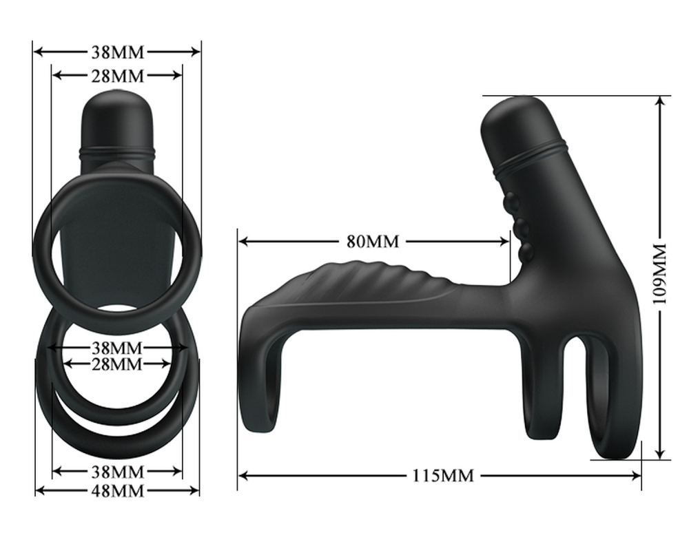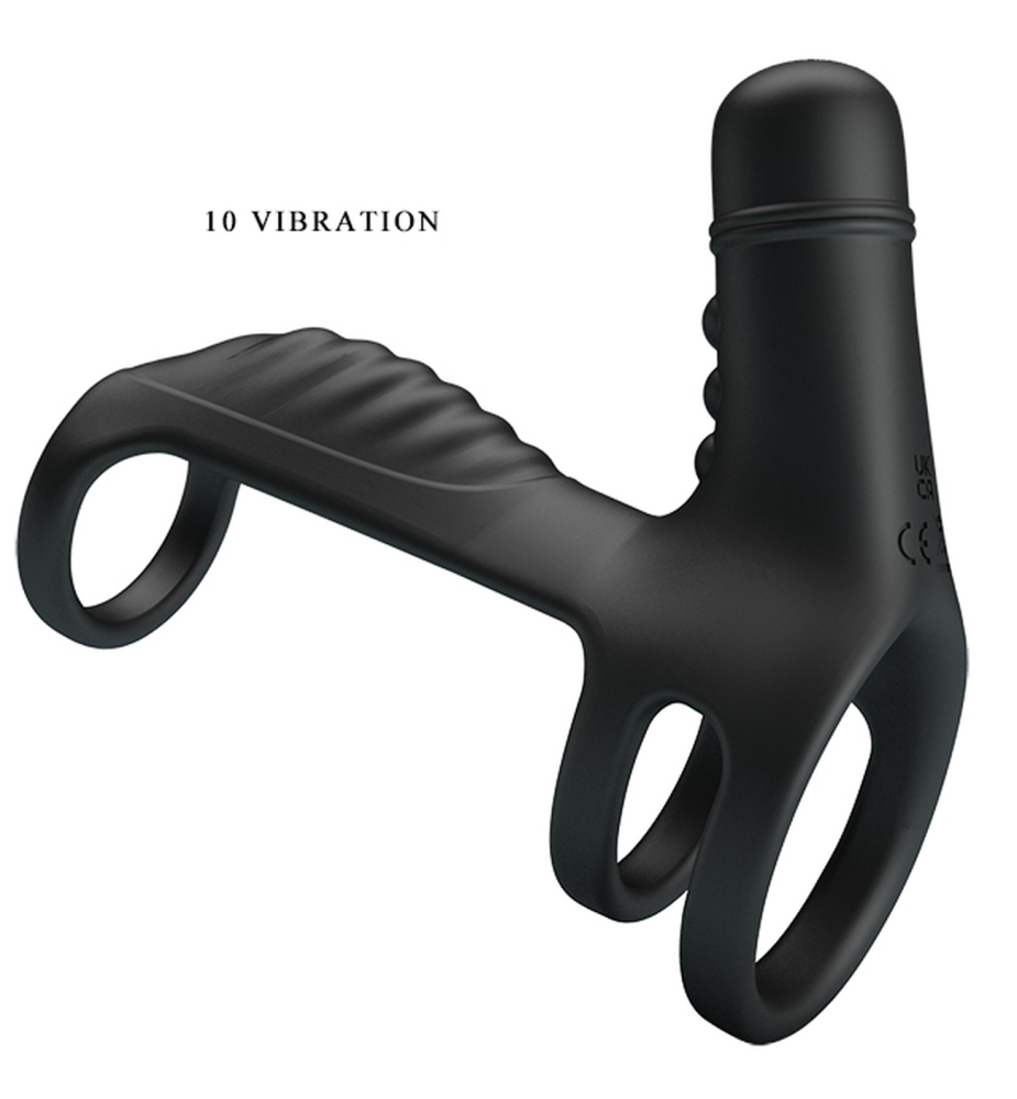 Вибронасадка для мужчин черного цвета LYBAILE Pretty Love VIBRATING PENIS SLING Avokado