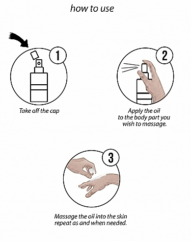 Способ применения: нанесите любое количество масла на желаемую часть тела и повторяйте его столько раз, сколько захотите.