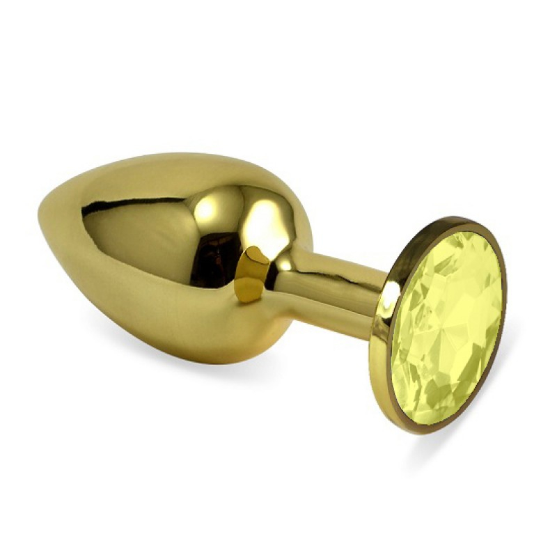 Анальная пробка из нержавеющей медицинской стали золотистого цвета с желтым камнем Bdsm4u размер Medium Avokado